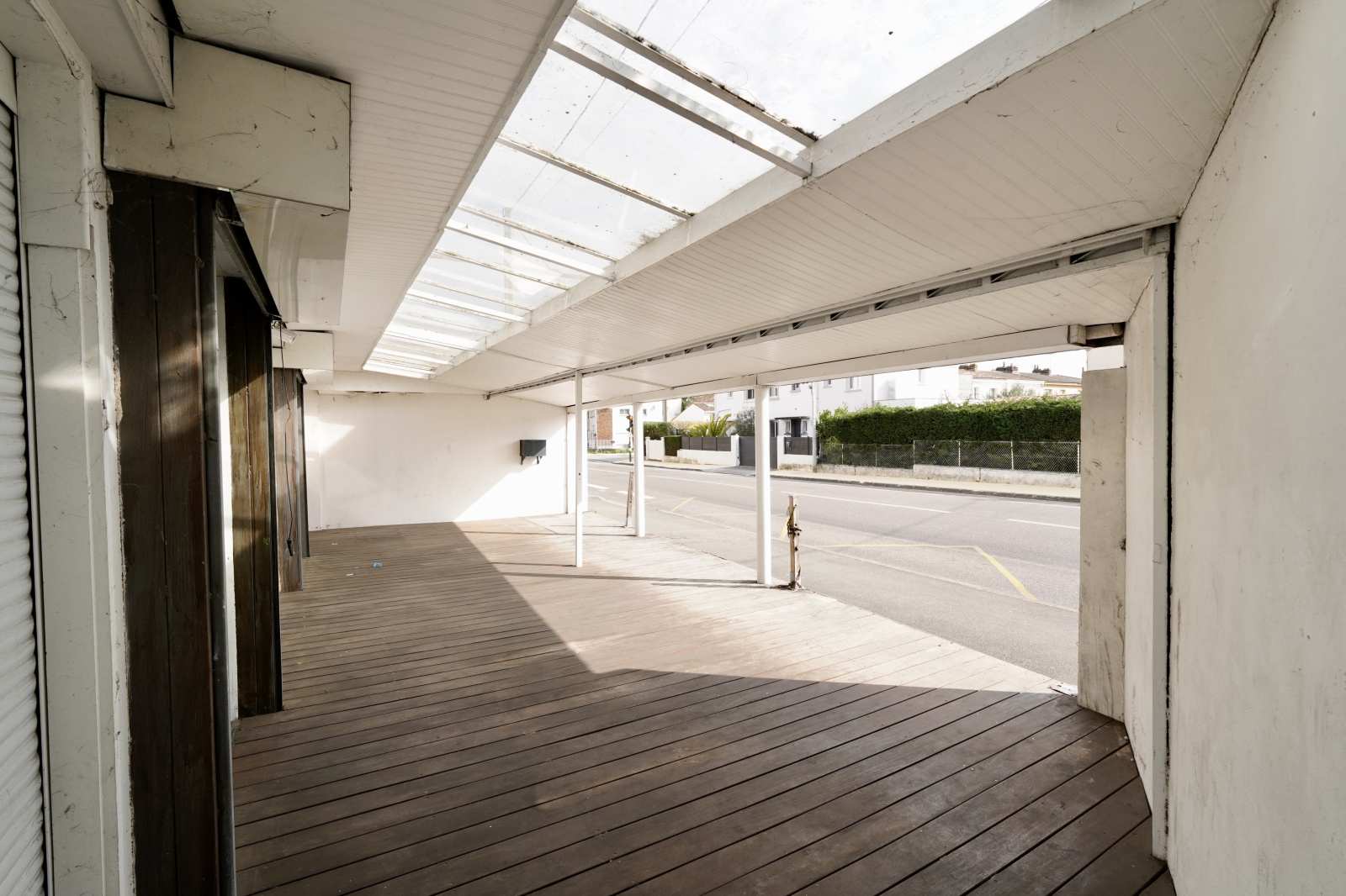 Espace exterieur avec un linéaire de vitrine conséquent.