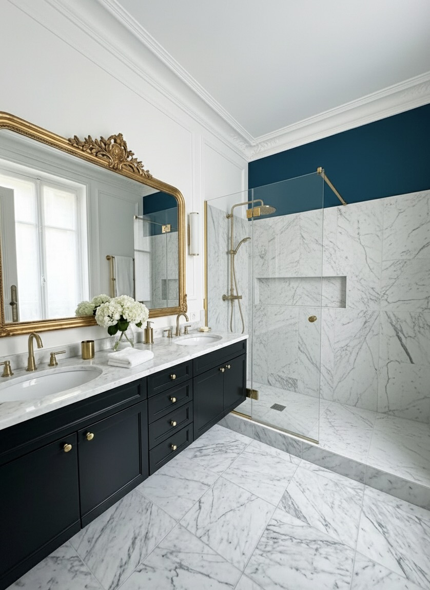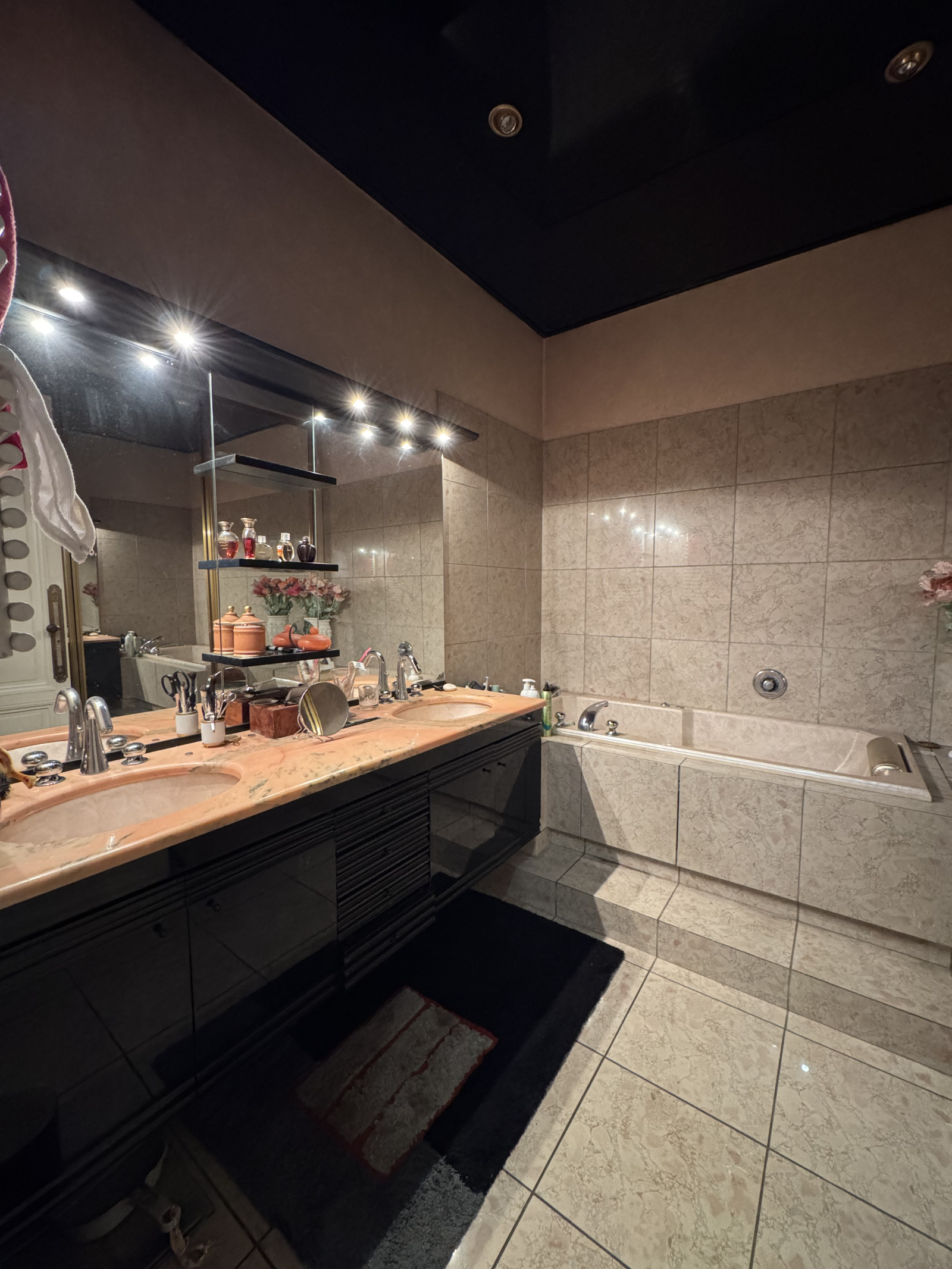 La salle de bain familiale, spacieuse et élégante, apporte confort et fonctionnalité.