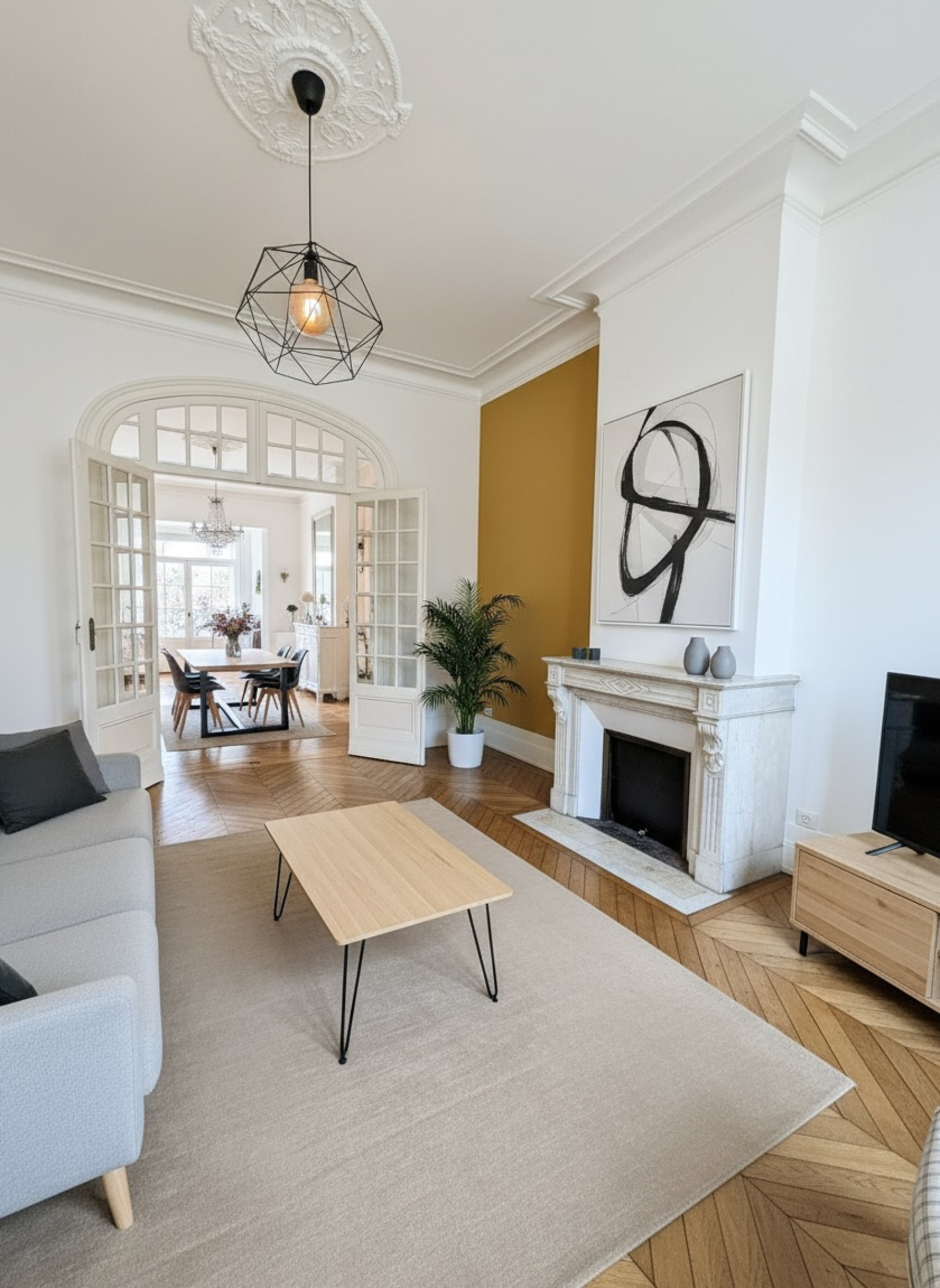 Chaque niveau révèle son charme : pierres apparentes, parquet en pointe de Hongrie, carreaux de ciment, moulures délicates… une atmosphère unique, intacte, qui ne demande qu’un léger souffle de modernité pour devenir un lieu d’exception. Nous vous proposons donc un projet d'aménagement pour ce bien.