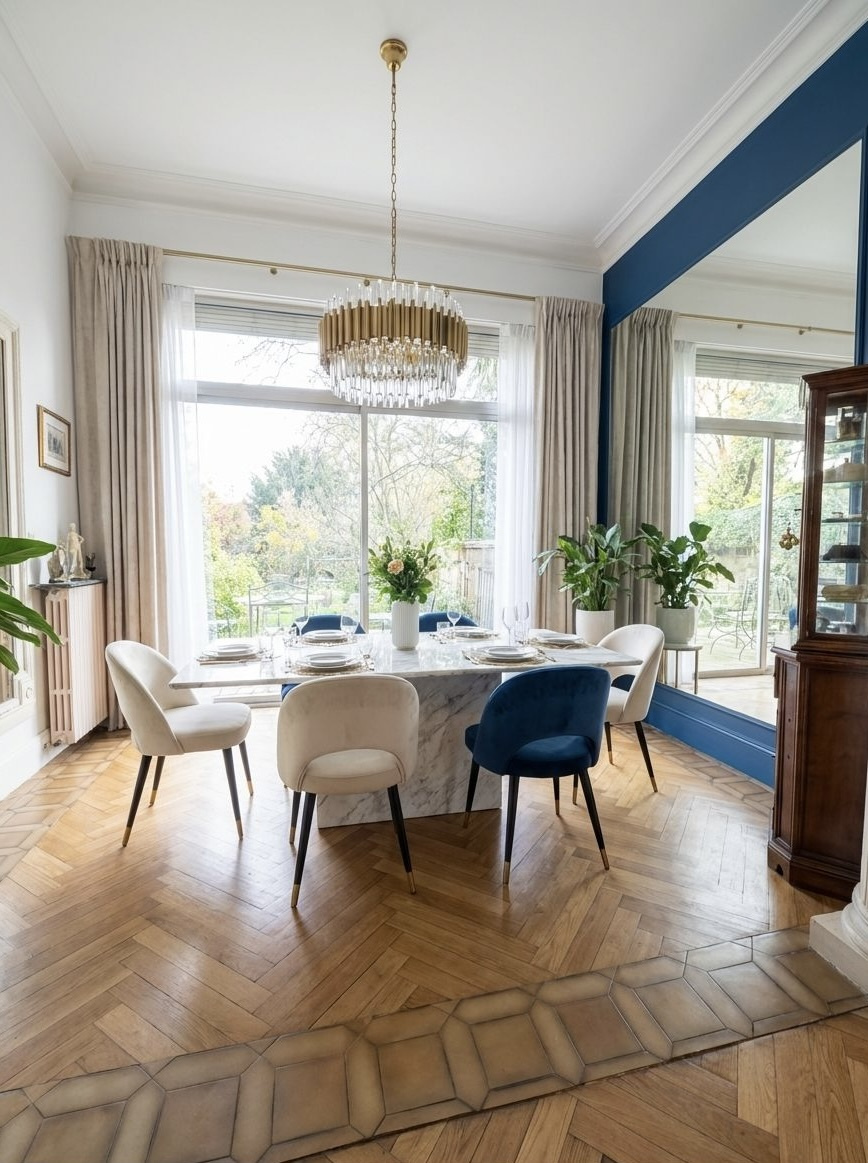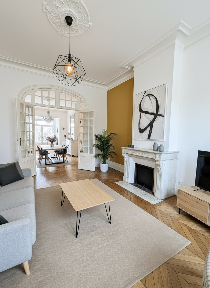 Le double salon-séjour baigné de lumière invite à se projeter dans des moments de vie chaleureux, tandis que la salle à manger attenante et la cuisine indépendante complètent un rez-de-chaussée au charme indéniable.