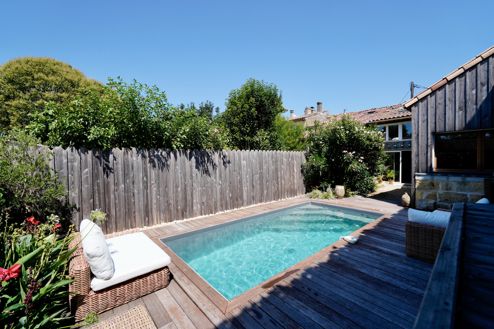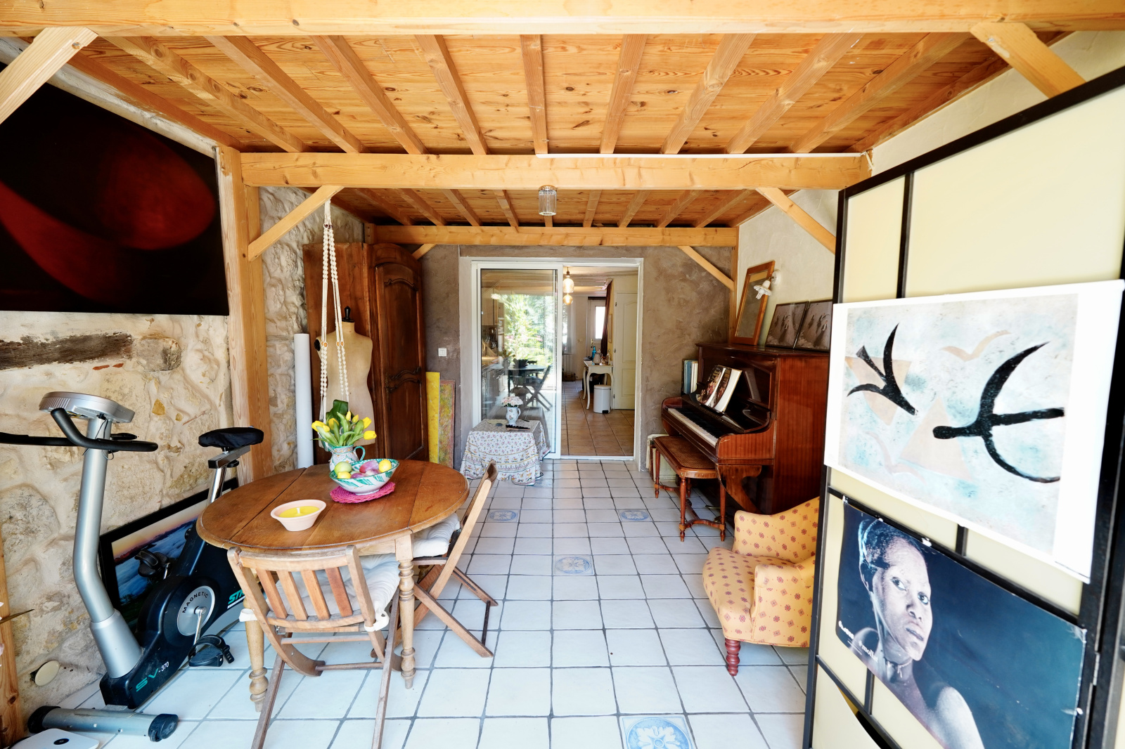 Côté extérieur, la parcelle orientée sud-ouest, sans aucun vis à vis, vous permettra de profiter du jardin paysagé, d'une piscine balnéo automatisée et chauffée, ainsi que d'une dépendance récente avec mezzanine de 11 m2 pouvant servir de studio indépendant, de bureau ou d'atelier.