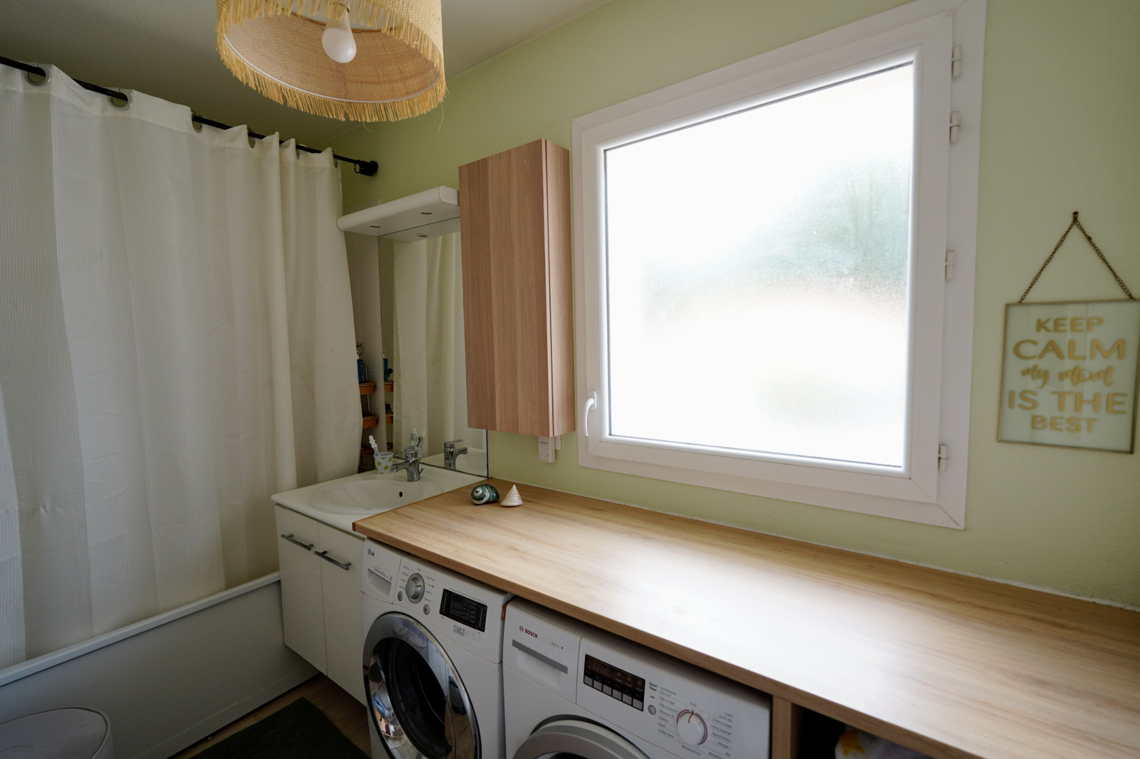 Au rez-de-chaussée, vous trouverez également un WC séparé, un cellier et un vaste garage (également possibilité de stationner un autre véhicule devant la maison).