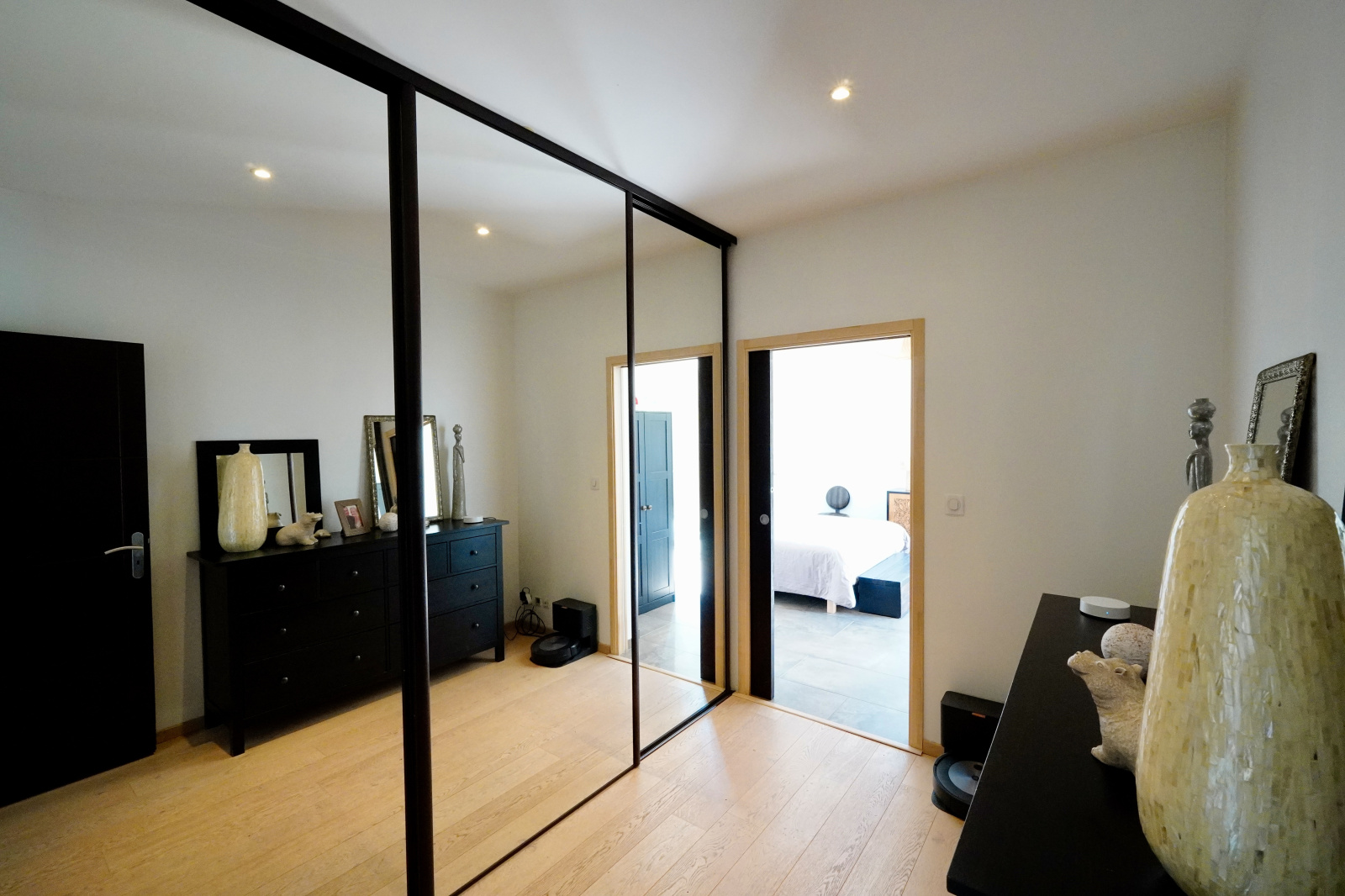 La maison est équipée de la climatisation dans les chambres et le garage/dépendance, d’un chauffage au sol réversible, de panneaux solaires et d’un système de domotique pour le jardin et les extérieurs.
