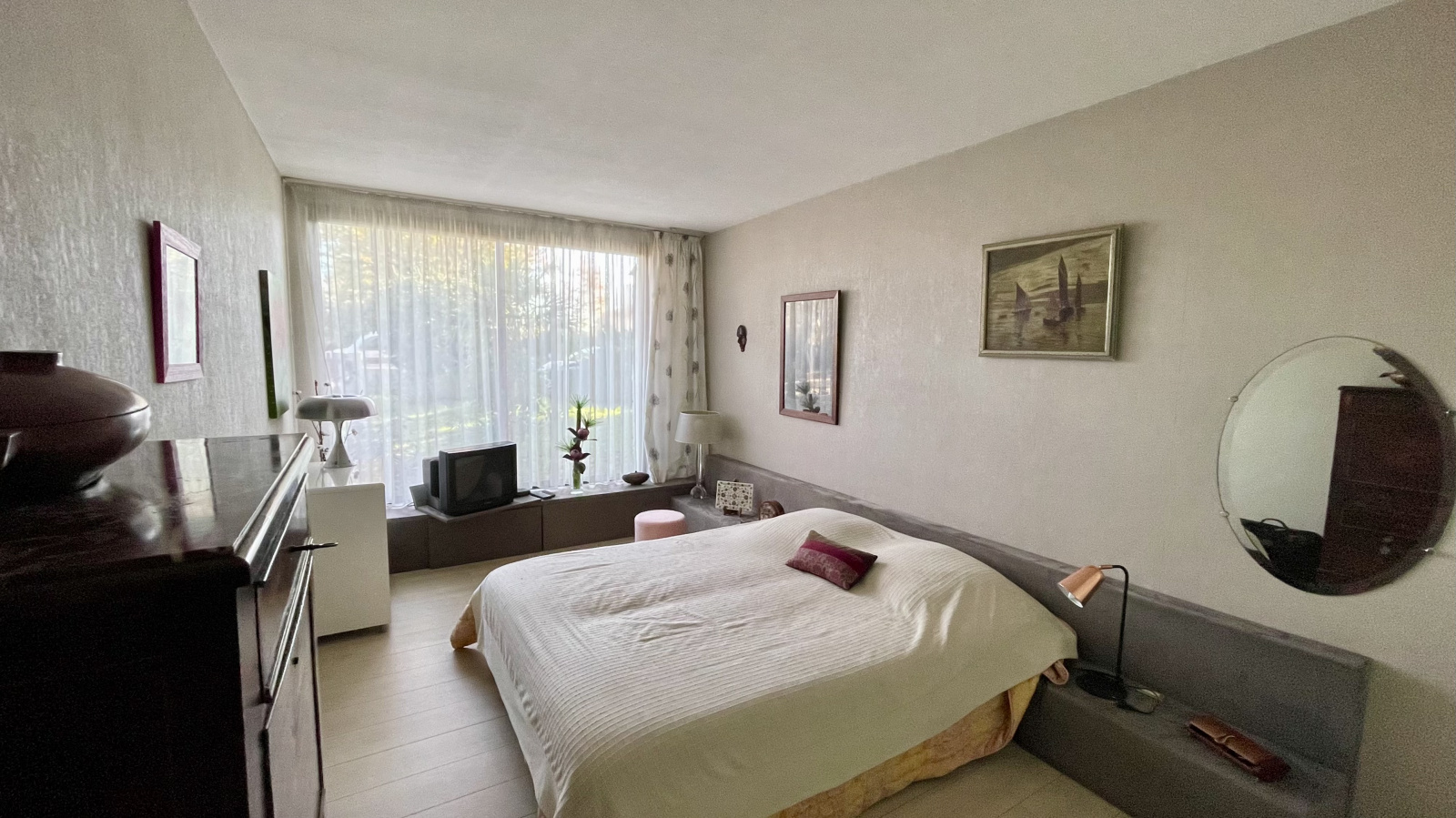 Pour complèter la partie de plain pied vous trouverez une chambre de bonne taille avec placard integré et une grande baie vitrée donnant sur le jardin, une salle d'eau/salle de bains, un WC séparé, ainsi qu'un accès garage.