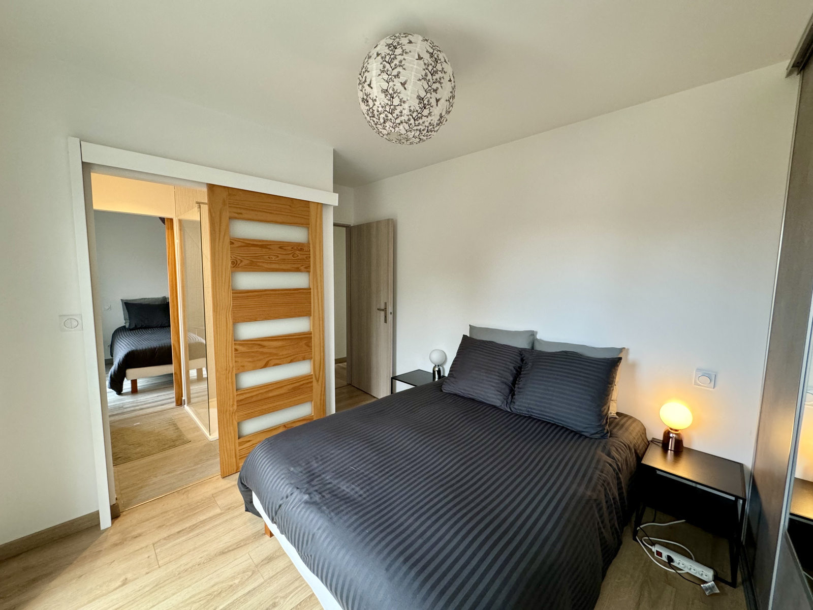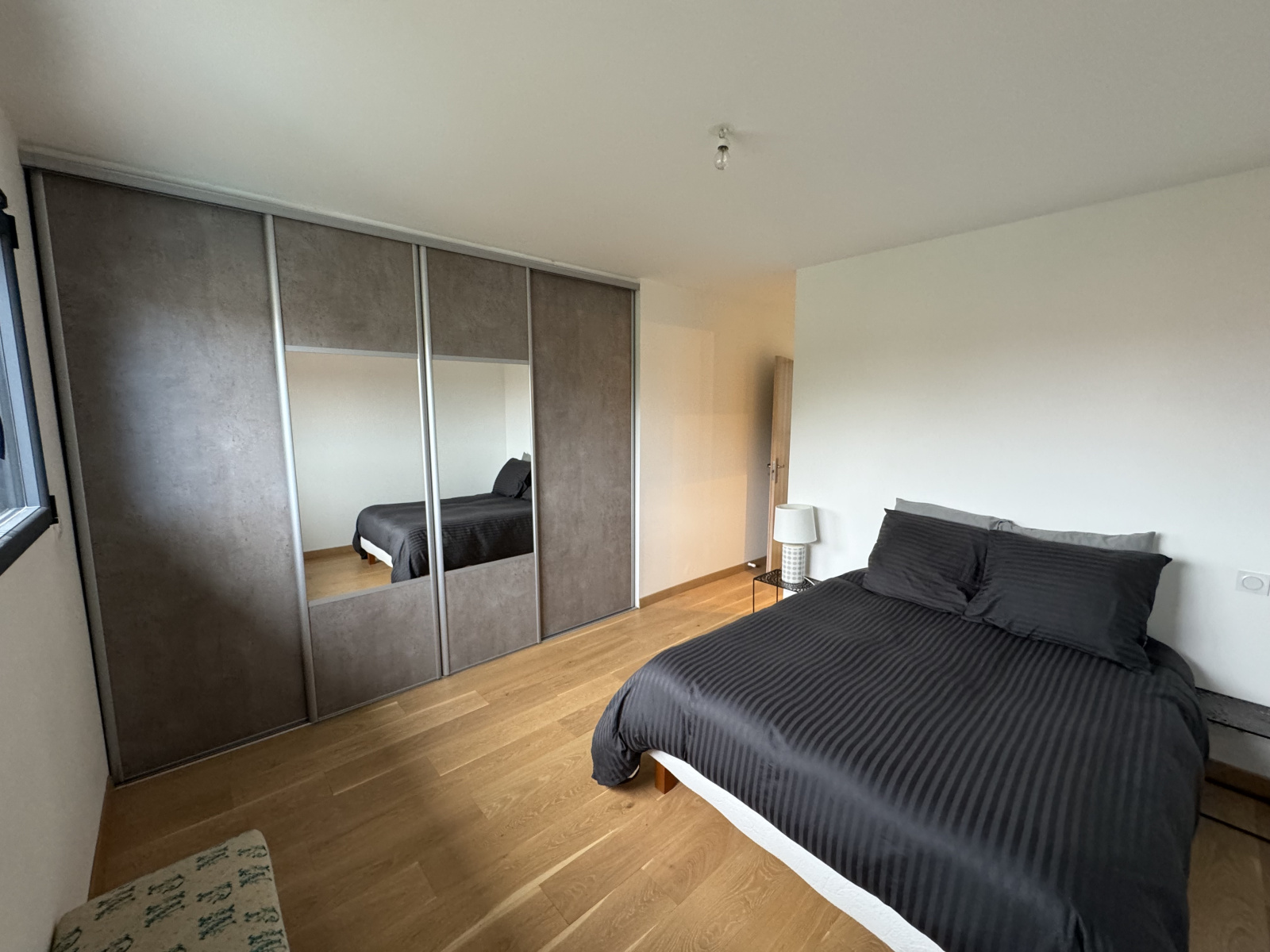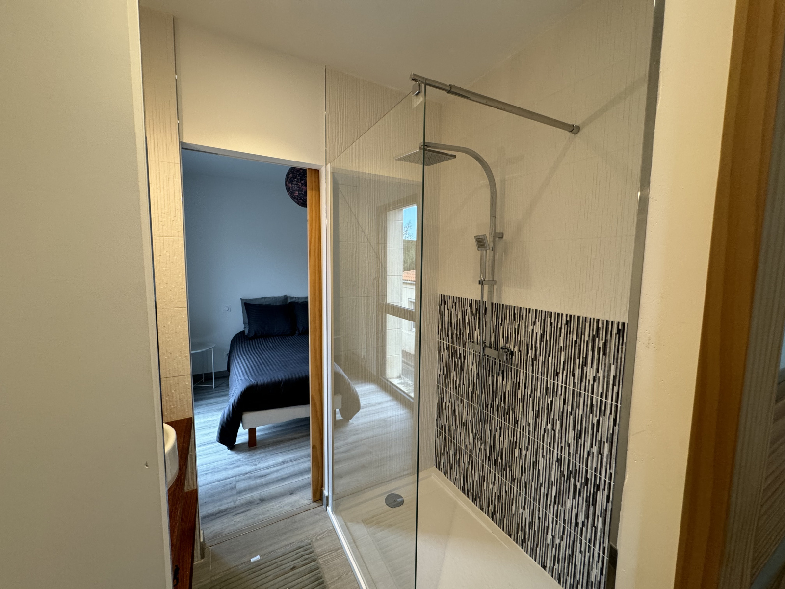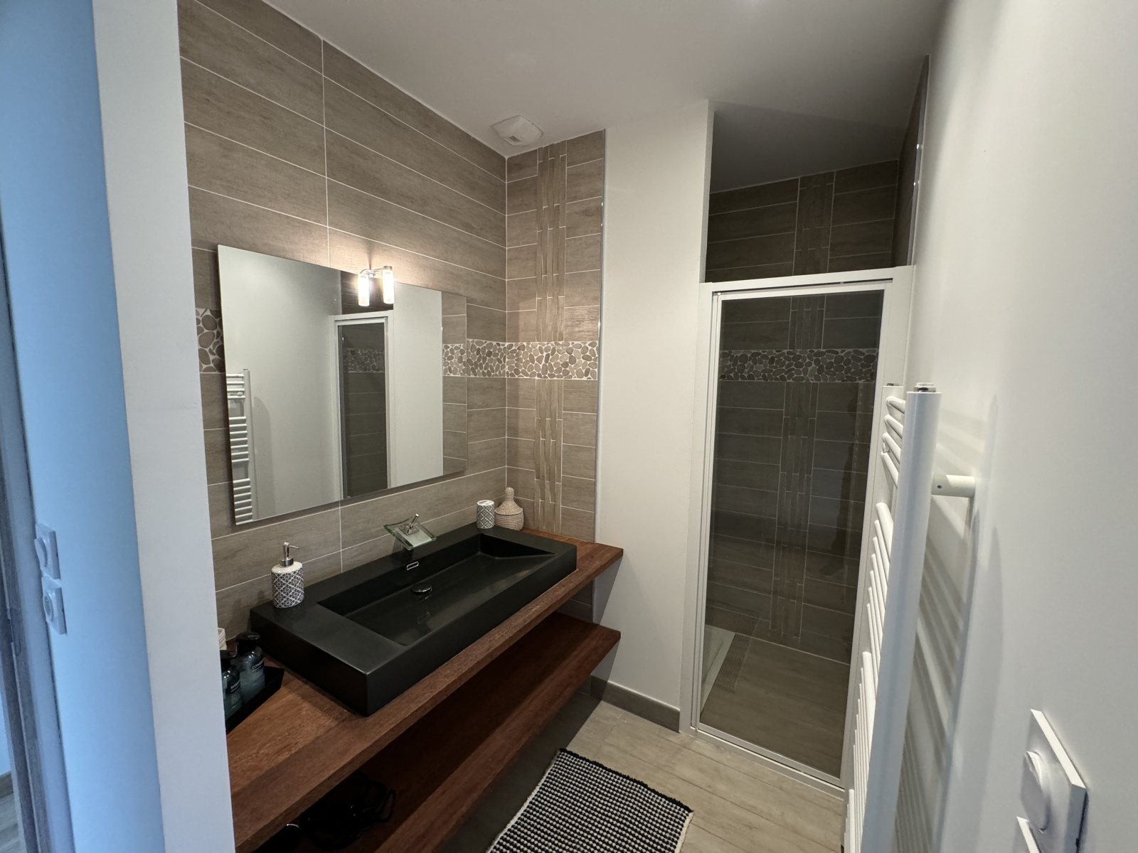 A l'étage, se trouve 3 chambres dont une suite parentale avec salle d'eau et grand placard, et deux autres chambres se partageant une salle d'eau communiquante.