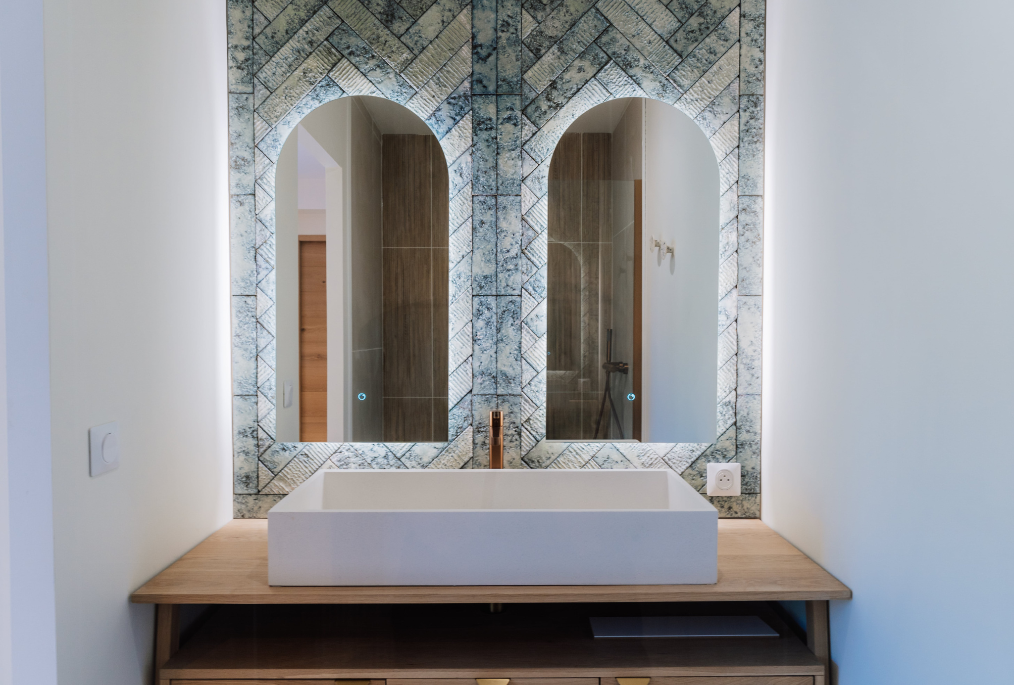 Au rez-de-chaussée, nous trouvons également une grande suite parentale avec salle d'eau privative donnant sur le jardin d’accueil, ainsi qu’un WC invité.